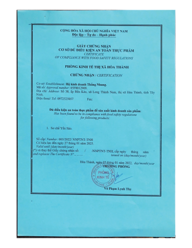 Sản phẩm chính hãng của Yến sào Thắng Nhung