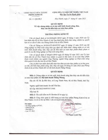 Giấy chứng nhận vệ sinh an toàn thực phẩm